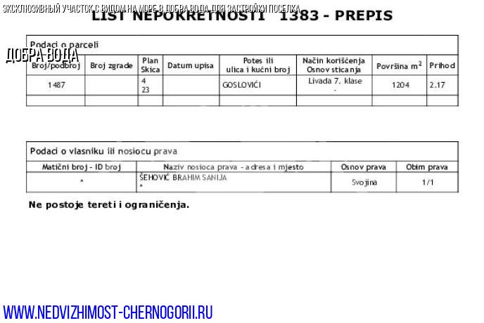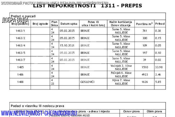 Продается участок 9300 m2 над Dobra Voda с незакрываемым видом на море для строительства деревни или поселения.